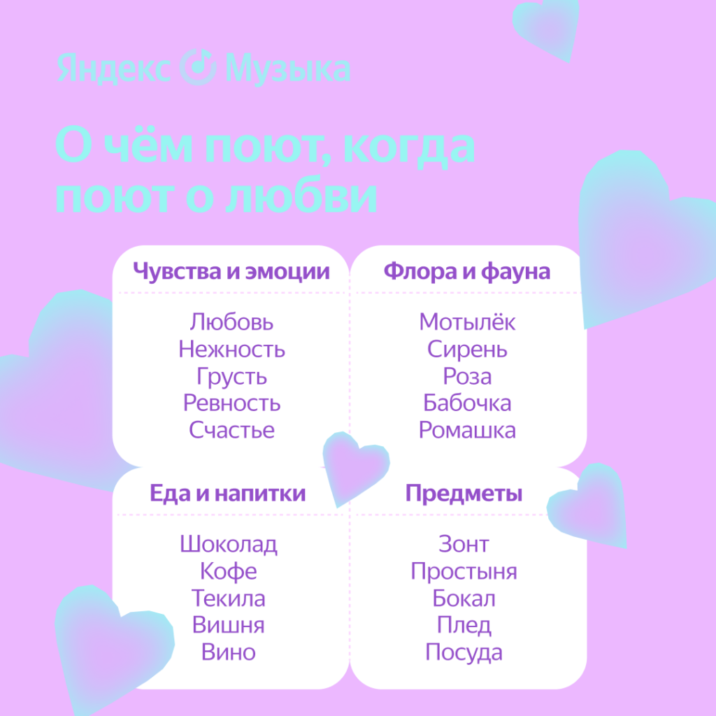 Ко Дню святого Валентина Яндекс Музыка узнала из чего сделаны русскоязычные песни о любви и вдохновила Балабобу писать романтические куплеты, рассказали viridus.ru в пресс-службе сервиса.