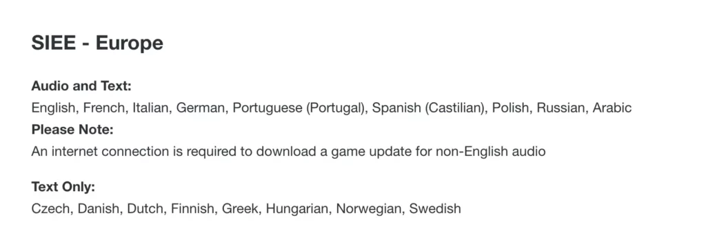 Также накануне открытия предзаказов на Spider-Man 2 разработчики обновили сайт поддержки, добавив информацию о языках, которые будут доступны в разных регионах. Для Европы в игре будет 17 языков, 9 из которых (и русский выходит в это число) — с озвучкой. Всего же сиквел игры о Человеке-пауке перевели на 25 языков мира, для 11 из них также записали дубляж. Однако, остается неизвестным, изменится ли список поддерживаемых языков к релизу.