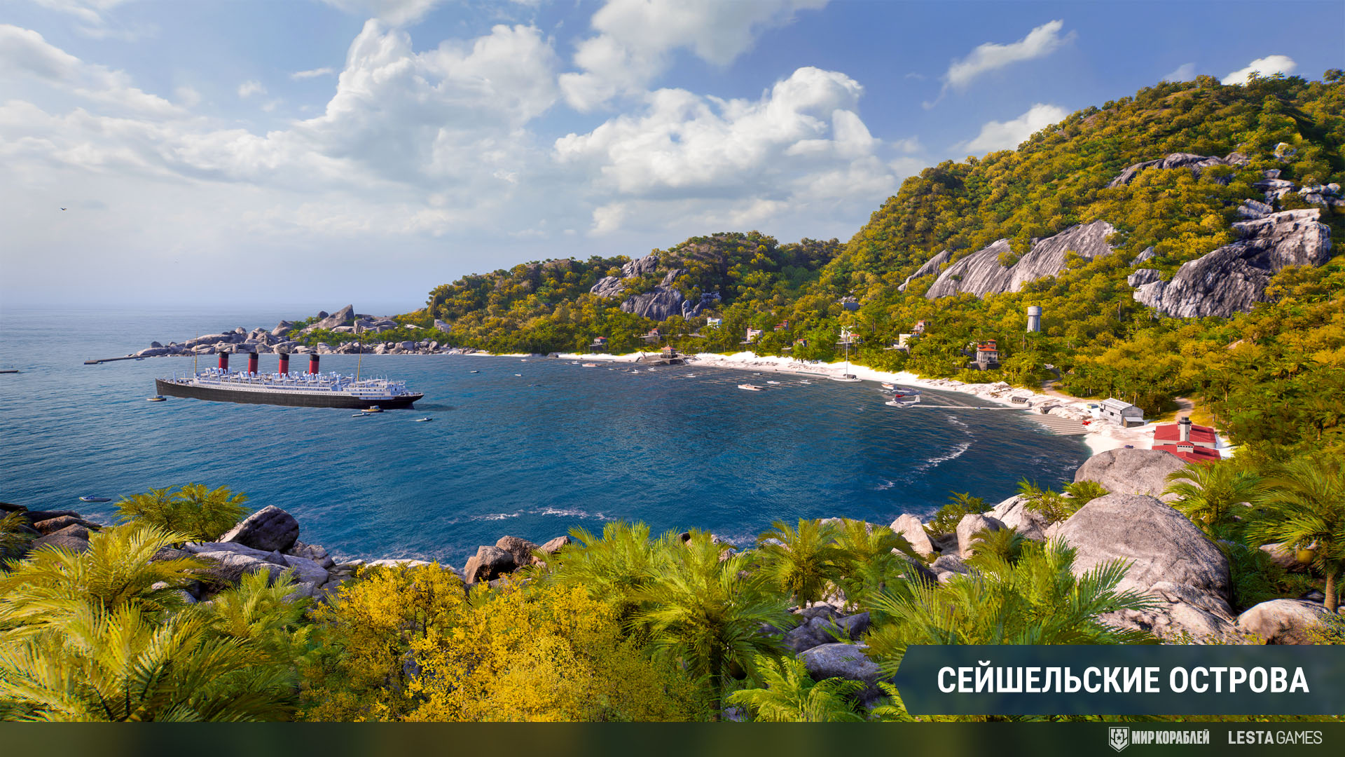 В Обновлении 12.3 появится новая карта «Сейшельские острова», переносящая корабельные баталии в теплую экзотическую местность. Ландшафт карты приближен к северо-восточной части Сейшельского архипелага с крупными островами Праслин и Ла Диг, а также множеством прилежащих к ним небольших островов. Внешний вид карты представлен зелёными тропическими лесами на гористых островах. «Сейшельские острова» предназначены для Случайных и Кооперативных боёв на кораблях V — IX уровней. Сражения будут проходить в режиме «Превосходство» с четырьмя контрольными точками и двумя вариантами их расположения.